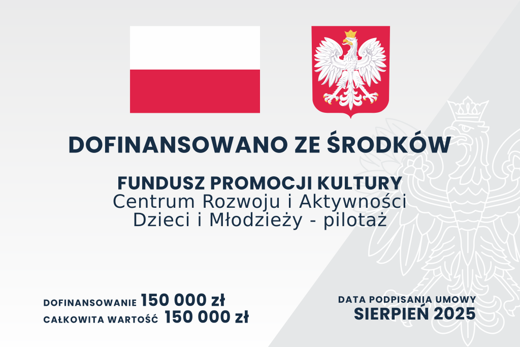 Проєкт „Центр розвитку та активності дітей та молоді – пілотний” був співфінансований Міністром культури та національної спадщини з Фонду сприяння культурі – державного цільового фонду.